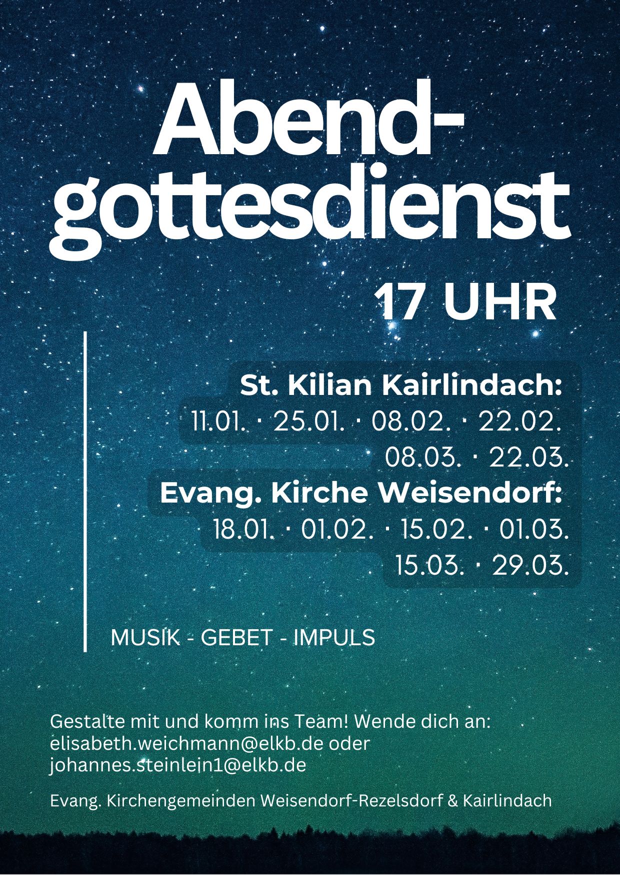 Ihre Kirchengemeinden Weisendorf und Rezelsdorf danken Ihnen herzlich dafür!